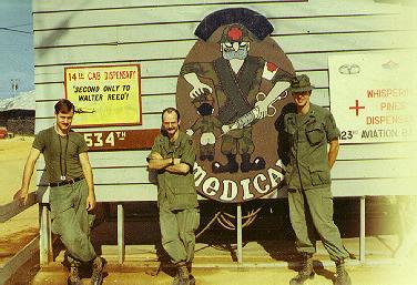 The Aviation Dispensary consisted of numerous connected structures in which medical care was provided to all soldiers attached to the 14th CAB (Combat Aviation Battalion) and the 123rd CAB.