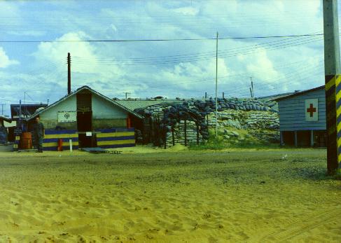 The sandbags in the center of this photo form part of the bunker used by the Chu Lai Aviation Dispensary personnel.